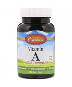 Vitamin A supports the health of the immune system and skin, as well as healthy eyes and vision. Vitamin A 10,000 IU (3,000 mcg RAE) is important for healthy vision. It plays an important role in helping the eyes adapt to light changes. Carlson Vitamin A also promotes skin, bone, and immune system health.